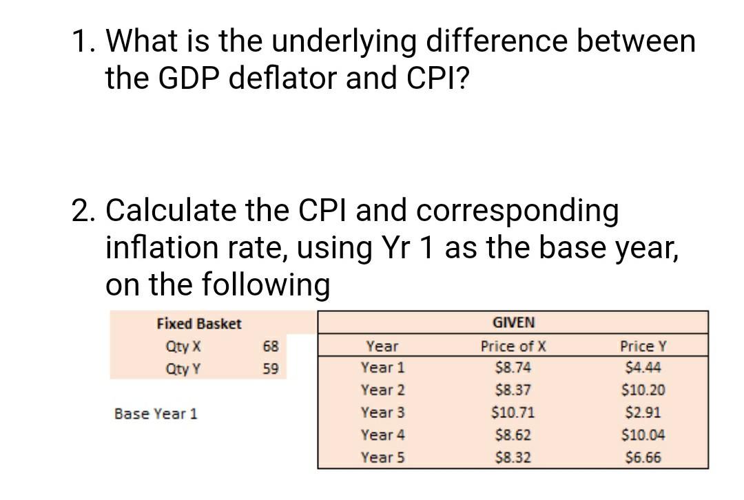 The difference between CPI and GDP deflator is that GDP deflator takes into account the prices of services and goods produced while the CPI deflator accounting emphasizes the prices of goods and services that are bought by the customers. First week only 499. View the full answer Previous question Next question.